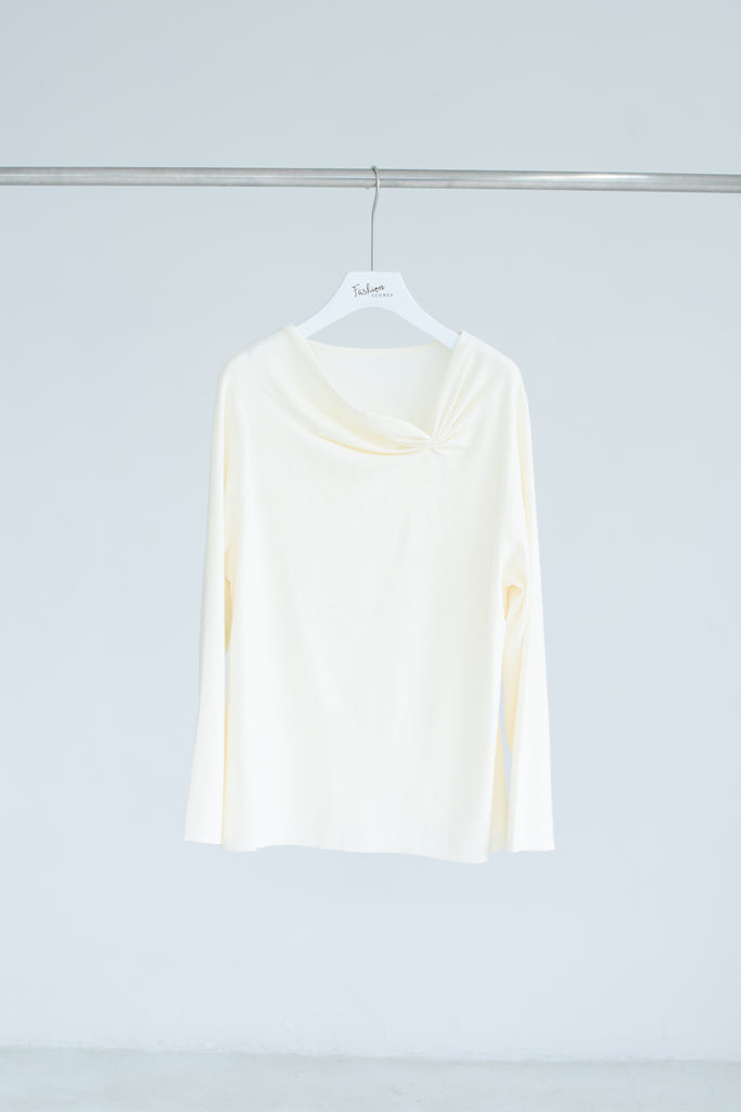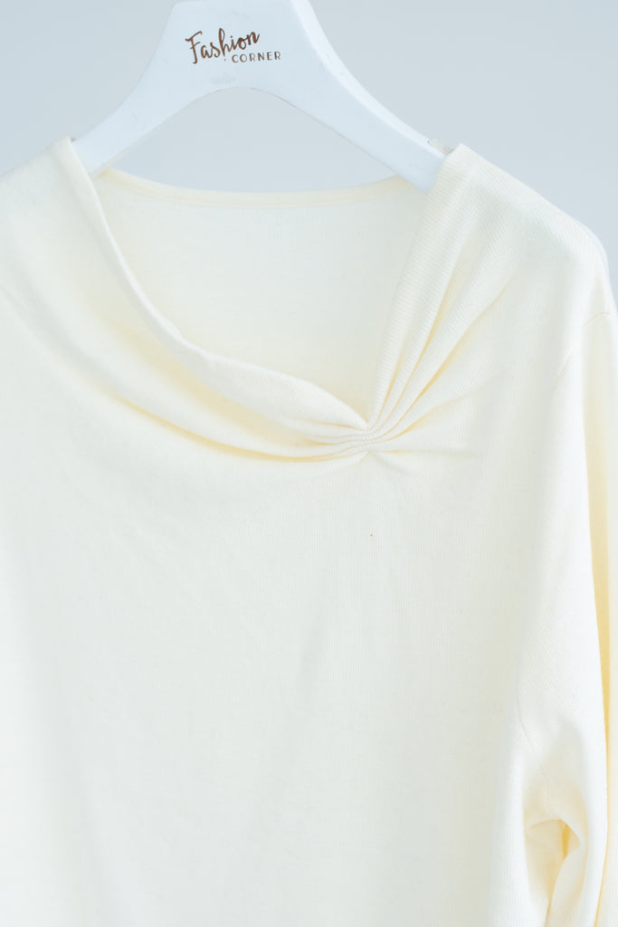 Asymmetric Ruched-Neck Knit Top Beige