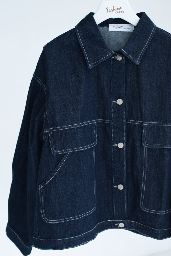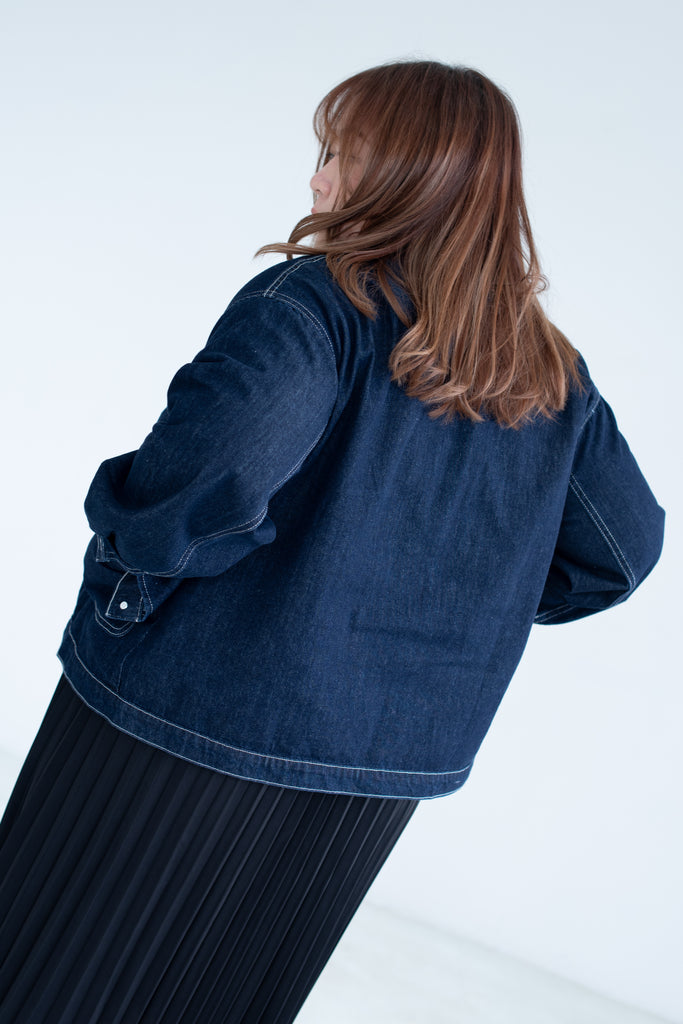 Crafted from classic denim with crisp contrast topstitching, this jacket adds a sharp, layered look to everyday outfits. Clean lines with thoughtful details make it easy to dress up or down.