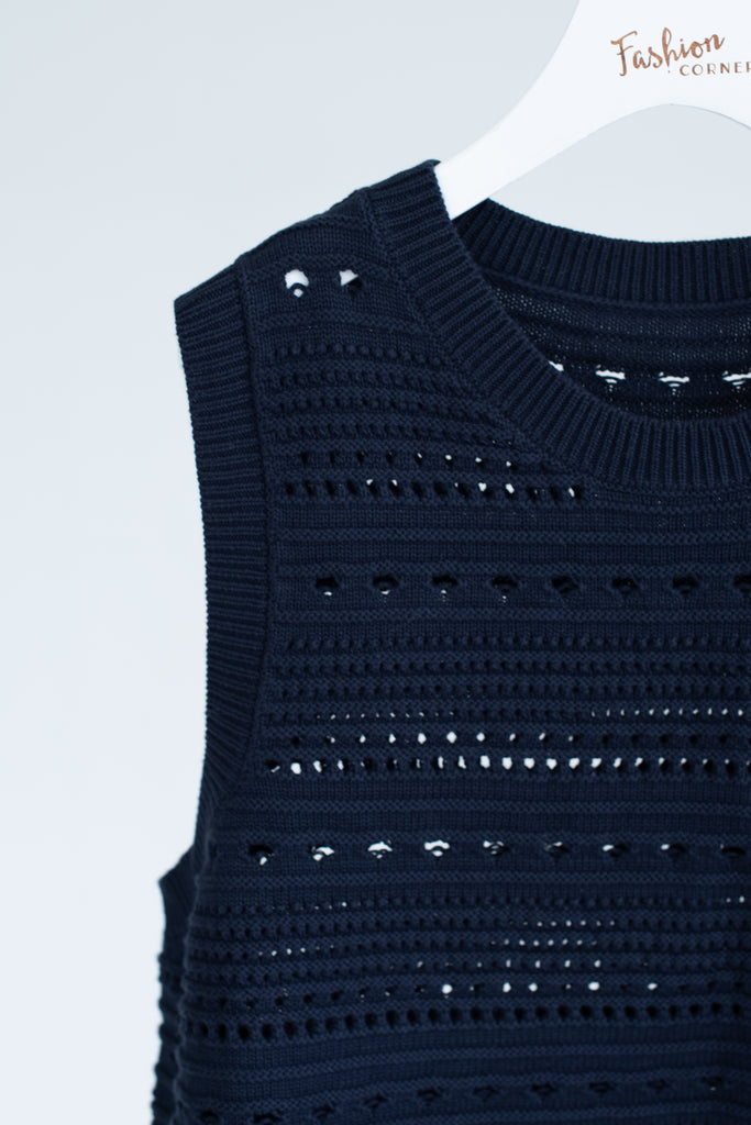 Crew-Neck Knit Vest In Navy