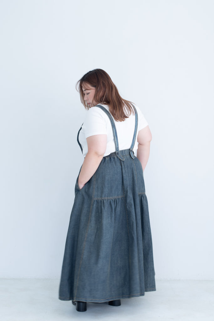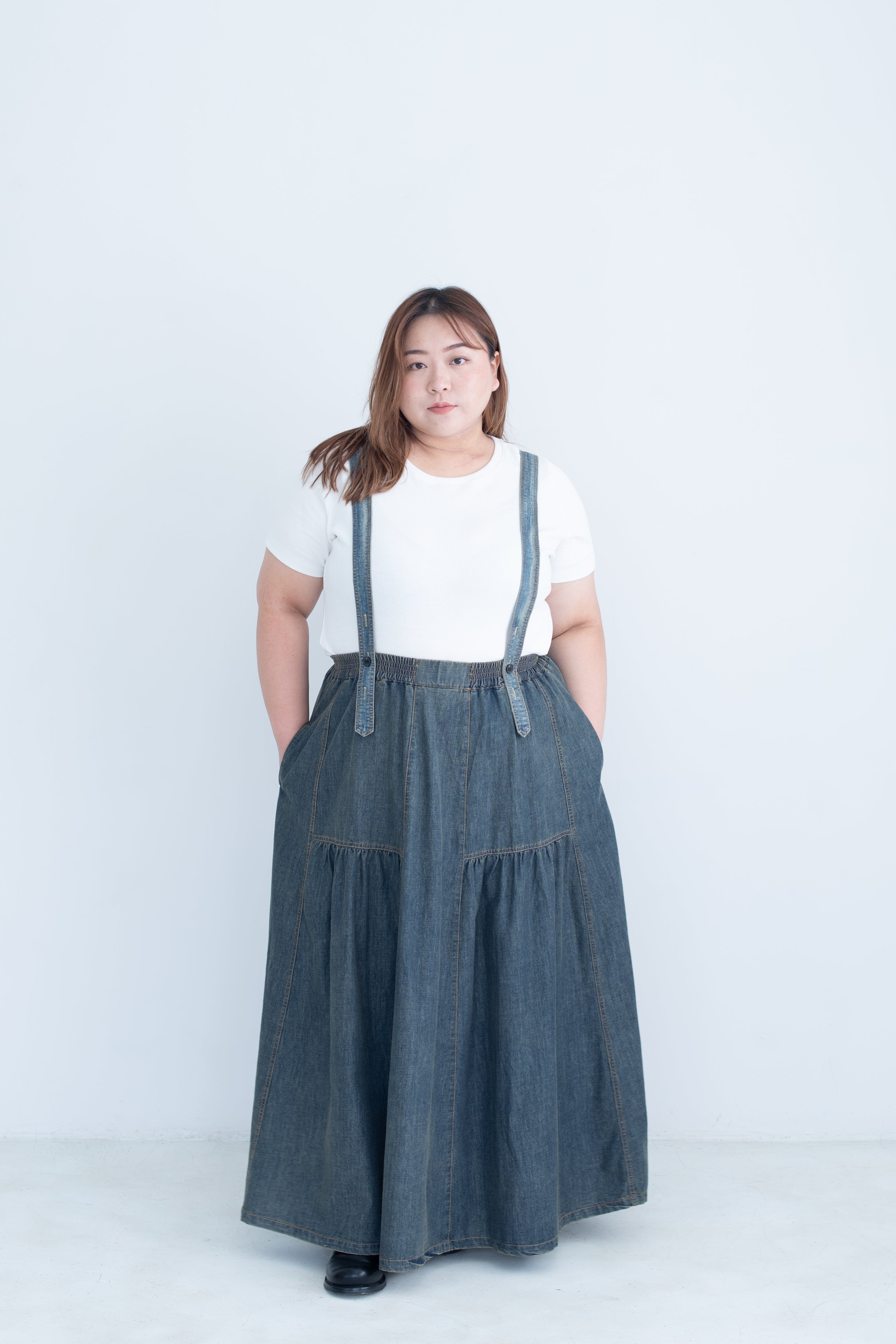 Featuring a flattering A-line silhouette, this denim skirt comes with detachable straps that allow you to switch between a classic skirt and a playful suspender style. Versatile, modern, and easy to mix and match for any casual day out.