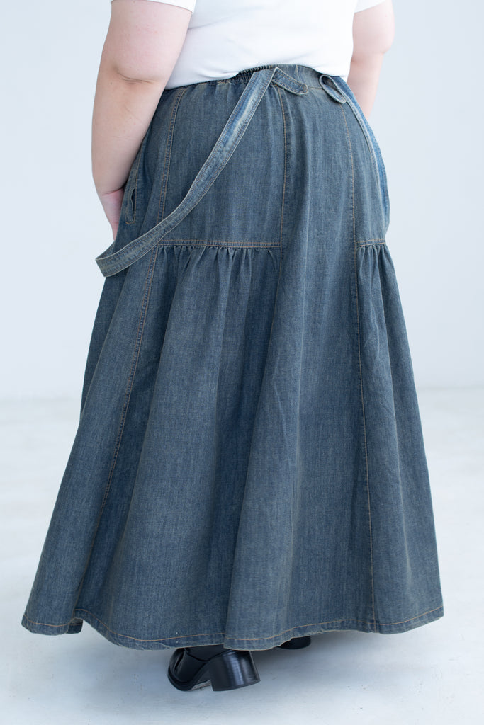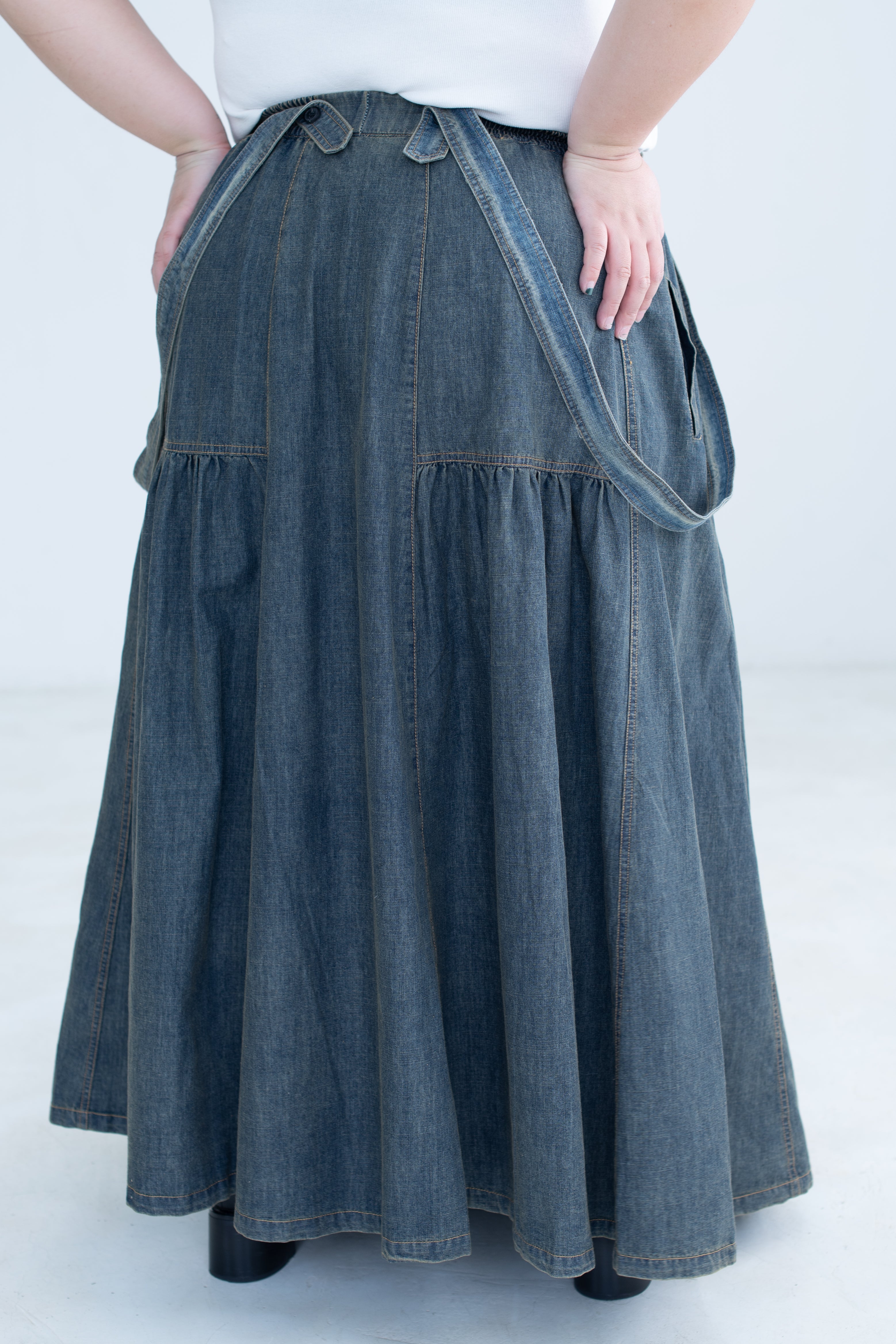 Detachable Strap Denim A-Line Skirt In Vintage Blue