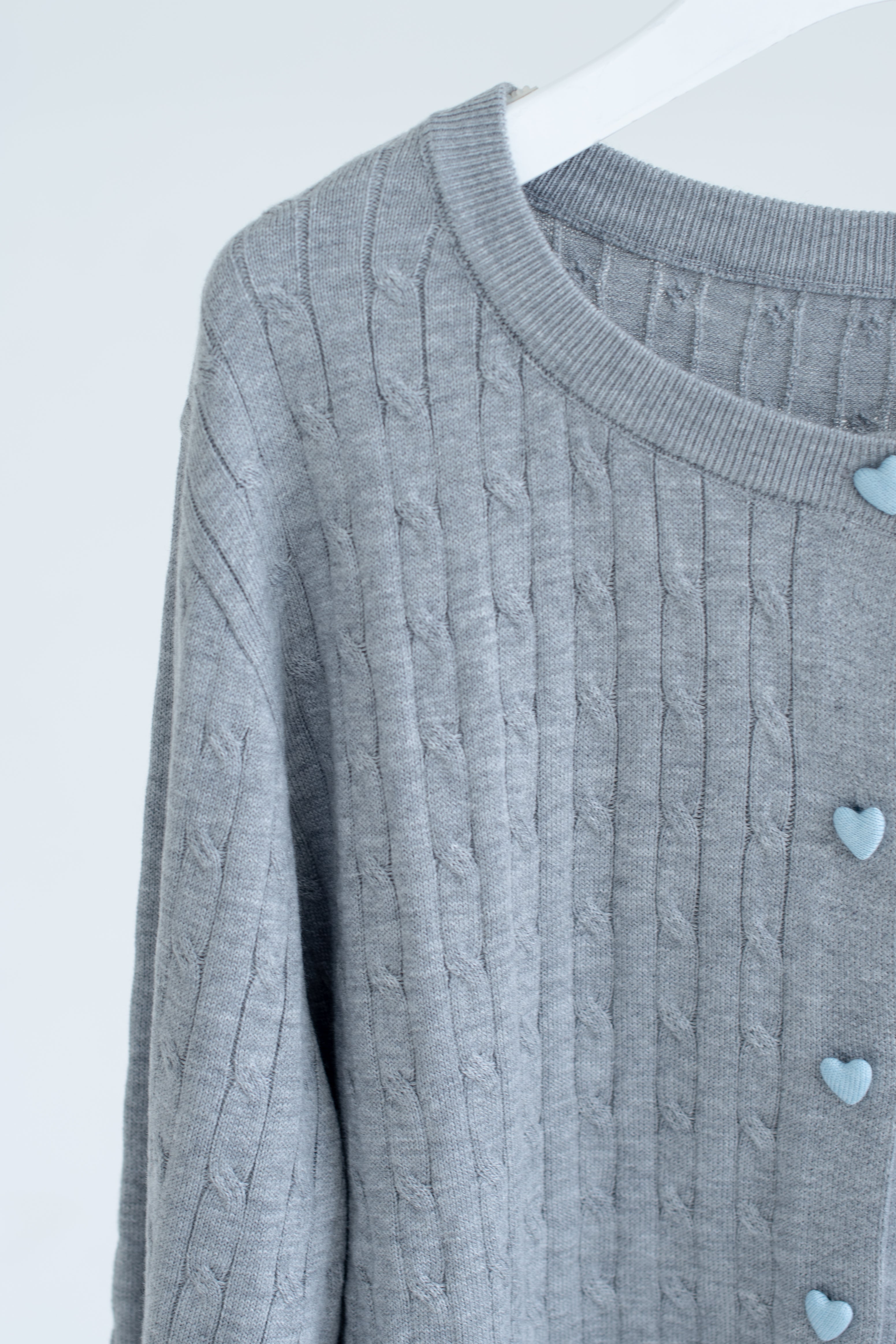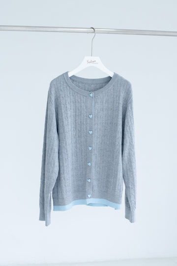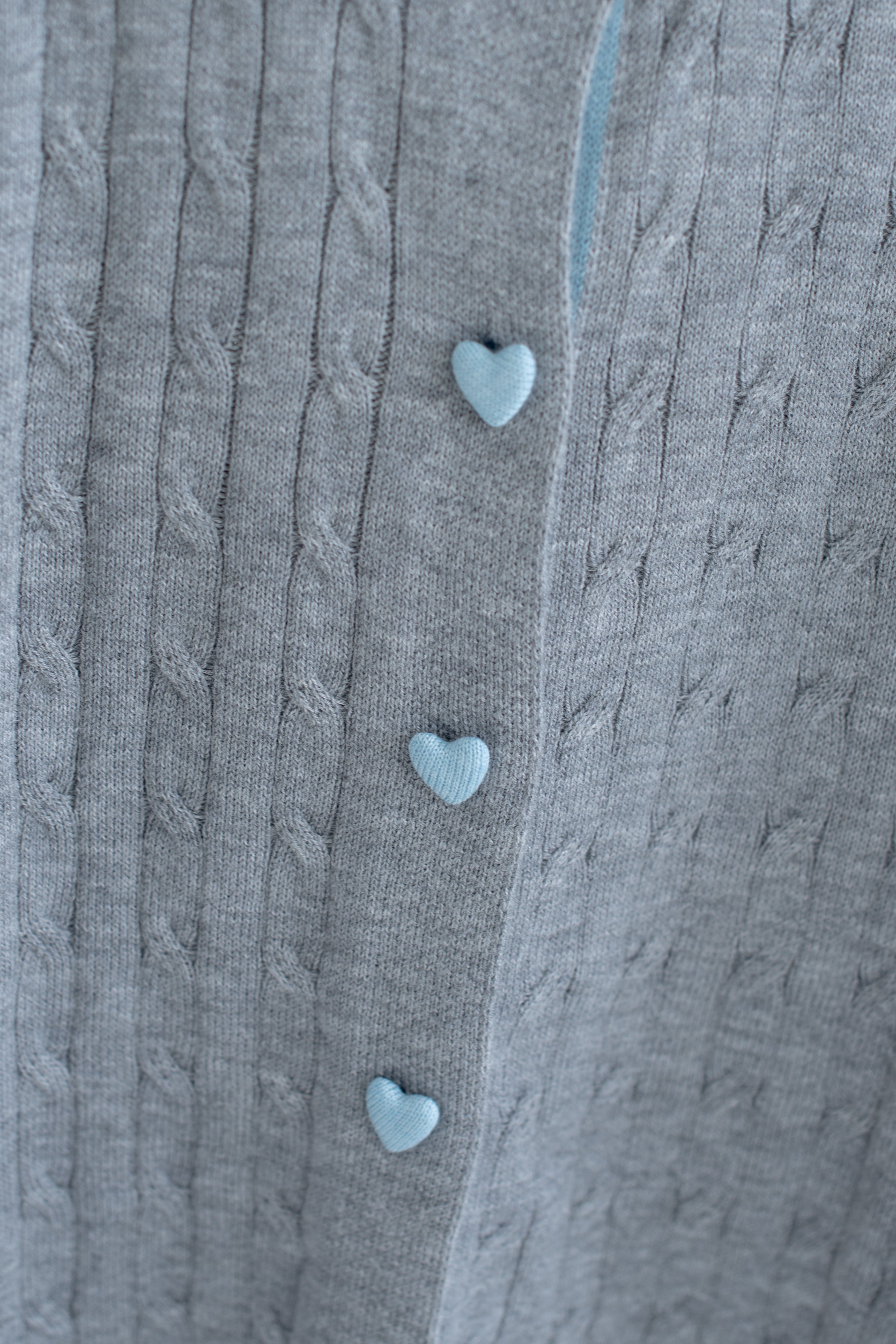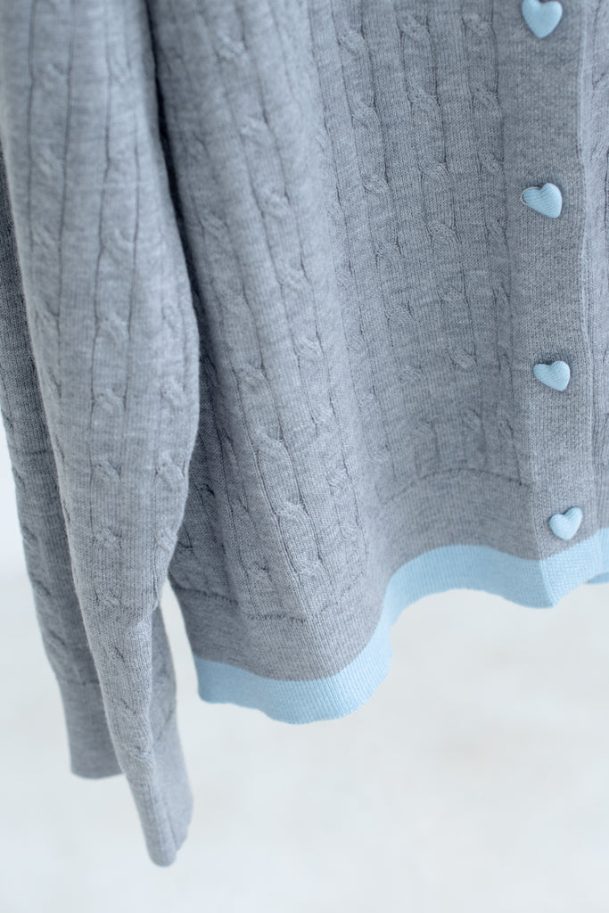 Heart-Button Contrast Knit Cardigan In Blue & Grey