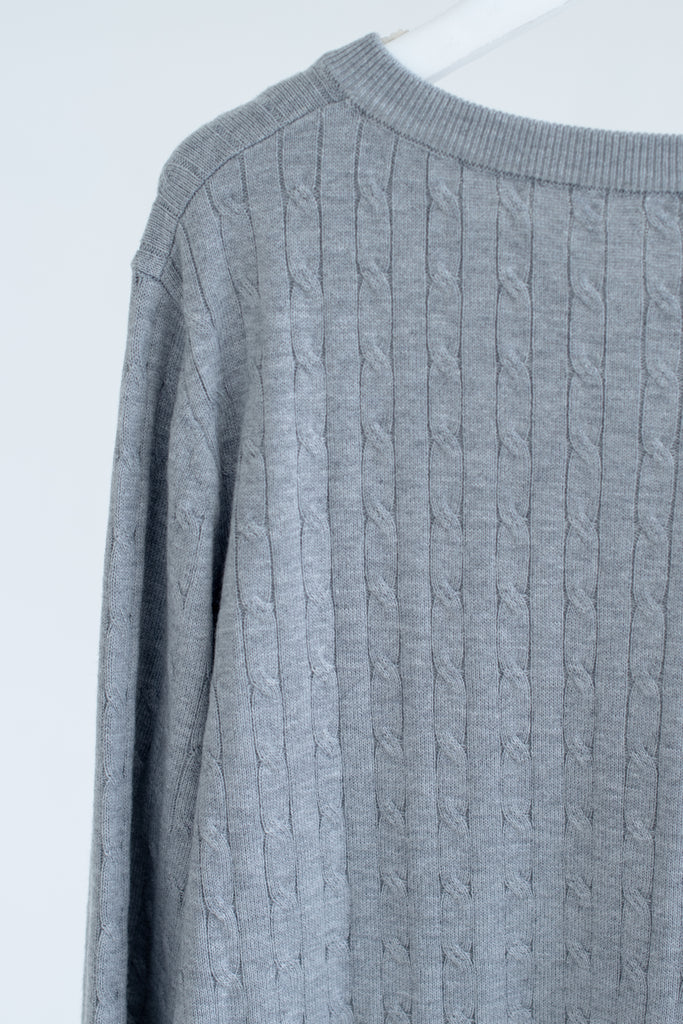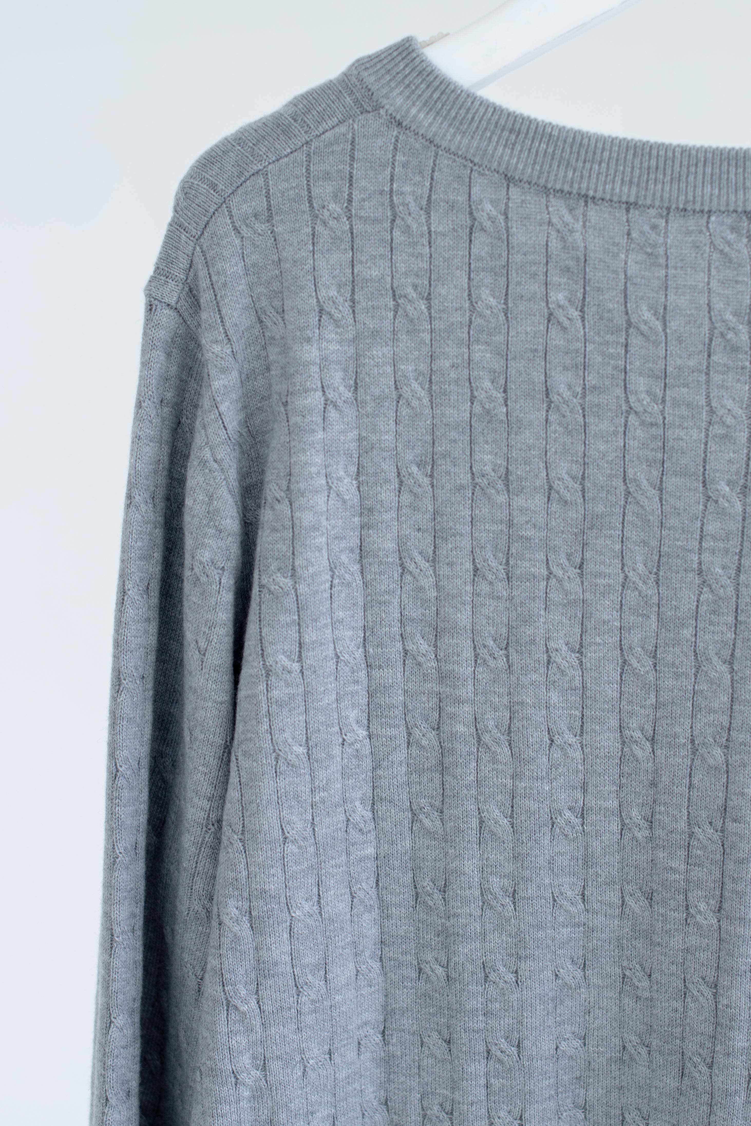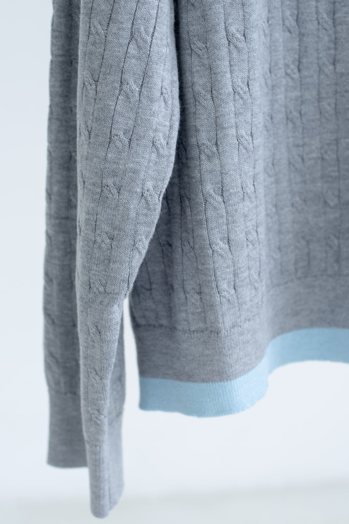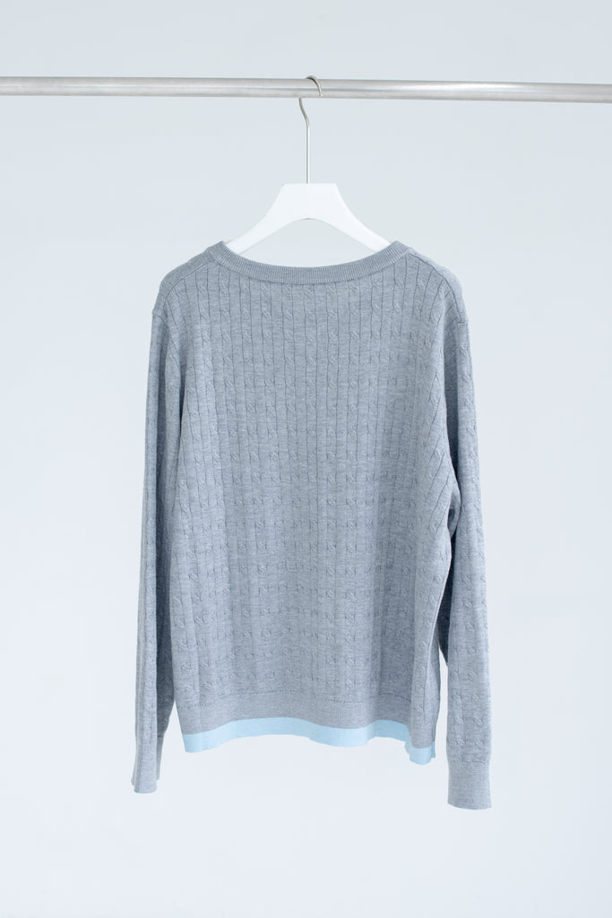 Heart-Button Contrast Knit Cardigan In Blue & Grey
