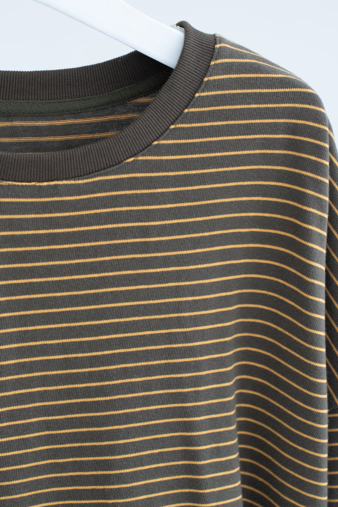 Oversized Crew-Neck Striped Top In Yellow & Brown