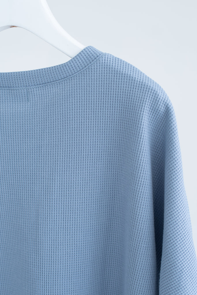 The waffle batwing sleeve top is a timeless and versatile piece in any wardrobe. Featuring textured waffle patterns for subtle dimension, the batwing sleeves elegantly flatter the arms while creating a relaxed yet stylish look.