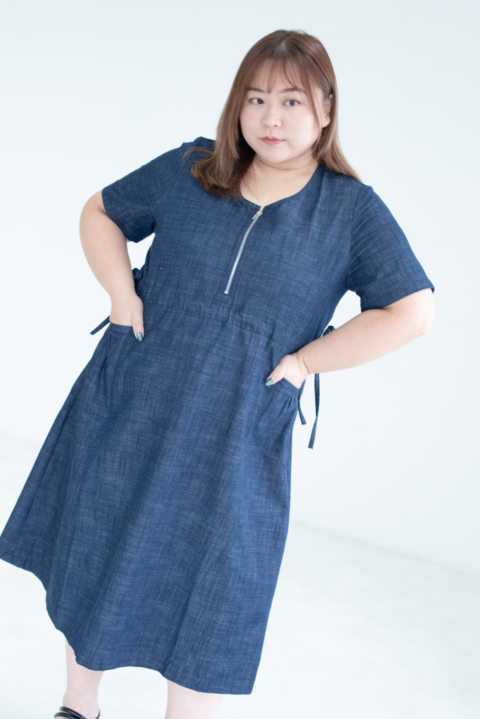 Classic denim meets modern ease. The zip-front design makes dressing effortless while adding a sleek, fashion-forward touch. An A-line silhouette keeps it flattering and easy to wear.