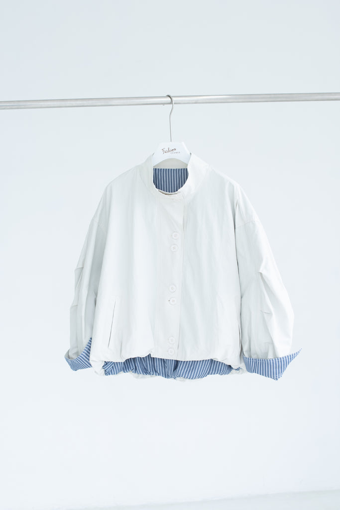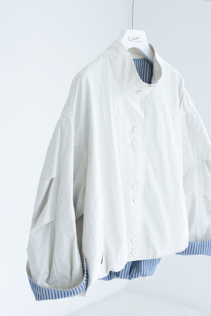 A modern take on the trench: this cropped jacket features feminine bubble sleeves and a crisp striped lining. Practical yet polished, it adds an effortless statement to everyday looks.