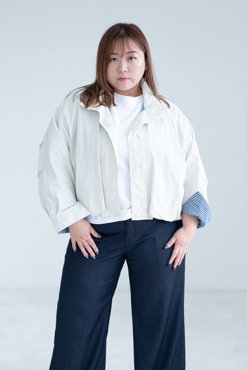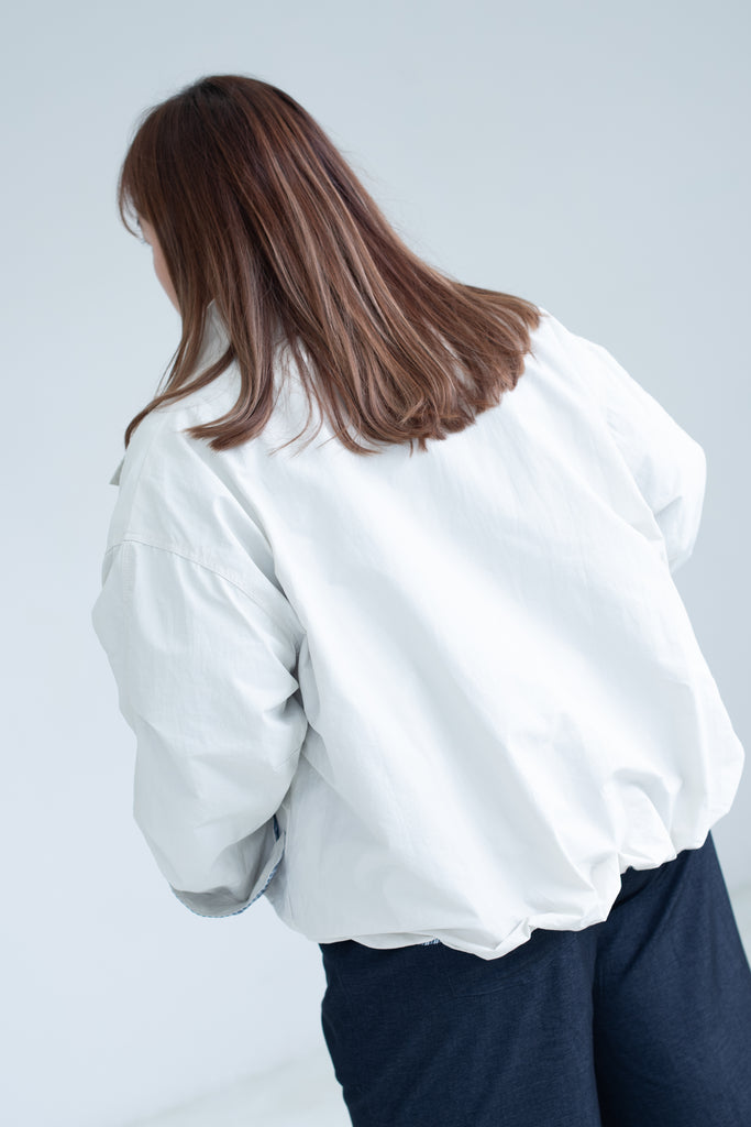 Bubble-Sleeve Cropped Trench Jacket In White