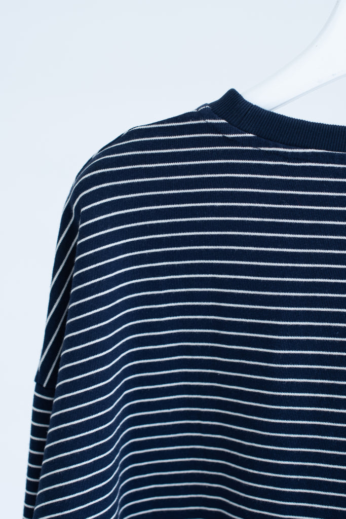 Comfort meets classic stripes in an easy, oversized fit. Pair with denim or a midi skirt for an effortless, wear-anywhere look.