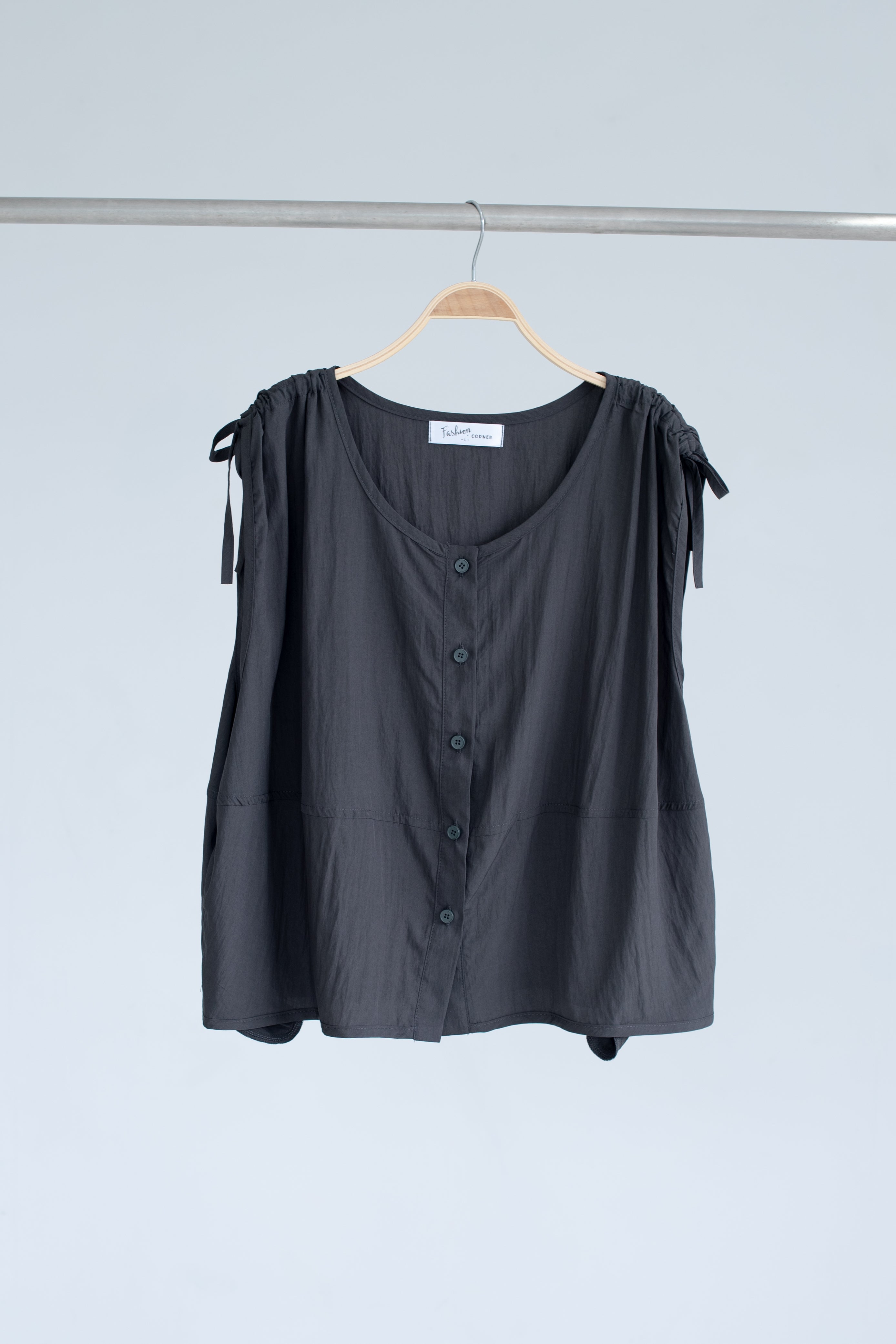 肩膊束繩增添時尚細節,前開鈕設計俐落好配搭。